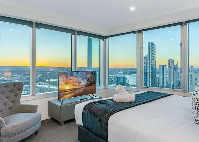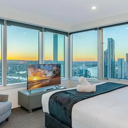 El apartamento Serenity Getaway Your Home Away From Home Views Gold Coast está situado en el centro de Gold Coast y ofrece acceso rápido a Q1 Building, que se encuentra a tan solo 6 minutos a pie. En el apartamento, situado a tan solo 150 metros de SkyPoint Observation Deck, los huéspedes pueden disfrutar de una sauna.